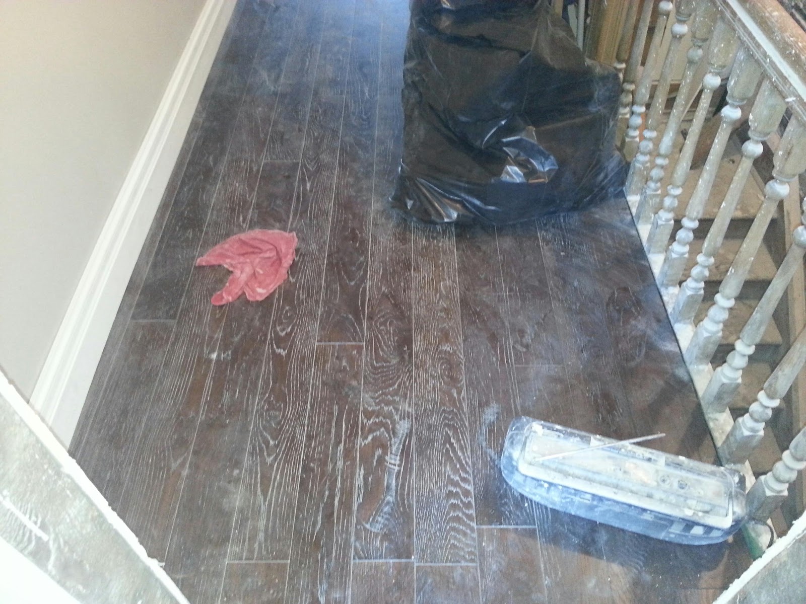 They still dusty from construction but here are new floors, engineered oak floors. 5inch wide planks with dark handscraped finish.