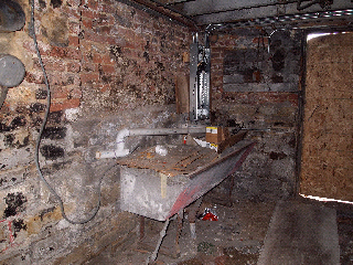 New plumbing for bathroom in basement and old furnace.