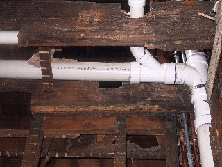 PVC running across the dining room, ceiling will drop down to accommodate the plumbing.