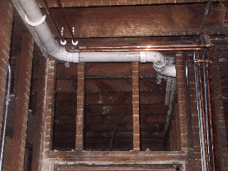 Plumbing for the master bathroom running across the ceiling of the living room.